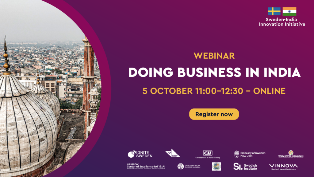 This webinar is organized by Ignite Sweden in collaboration with Business Sweden, the Confederation of Indian Industry, the Embassy of Sweden in New Delhi, Invest India, NASSCOM Center of Excellence, the Sweden-India Business Council, the Sweden-India Innovation Partnership, and the Swedish Institute. It is part of Vinnova’s Sweden-India Innovation Initiative.