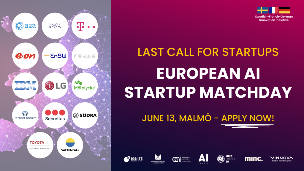 The event will take place in Malmö on June 13, and the program will include a matchmaking session between AI startups and corporates, workshops to share knowledge, and networking opportunities to connect with other participants.