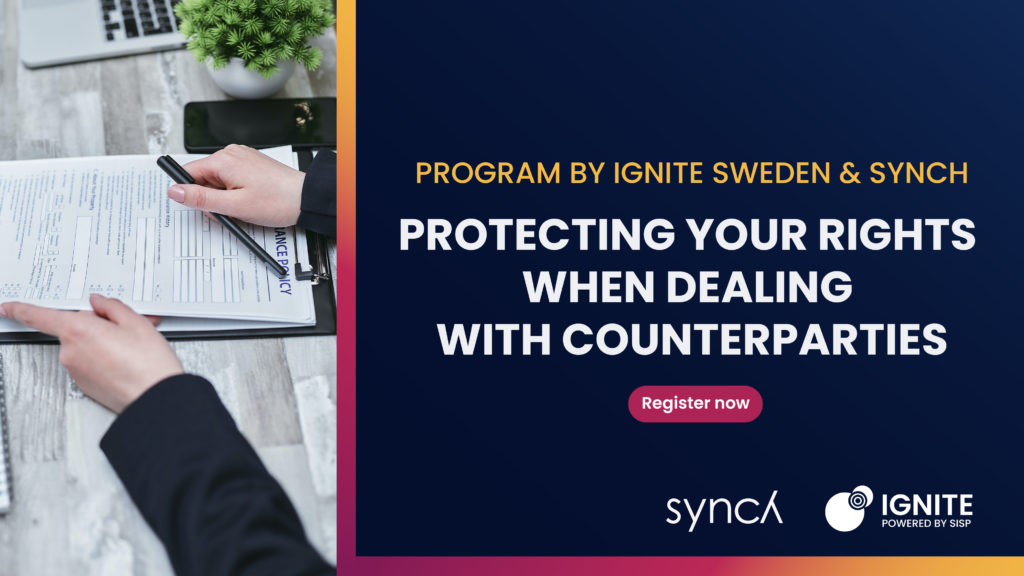 Join us for a one-hour kickoff session where Synch’s expert, Johan Ragnar, will provide tips and tricks for startups and scaleups on effectively protecting and positioning themselves in collaborations with larger companies and the public sector.
