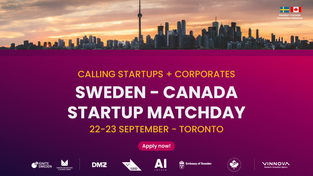In the second edition of the Sweden-Canada Startup Matchday, a maximum of 15 Swedish startups will have the unique opportunity to meet world-leading Canadian corporations live in Toronto, Canada.