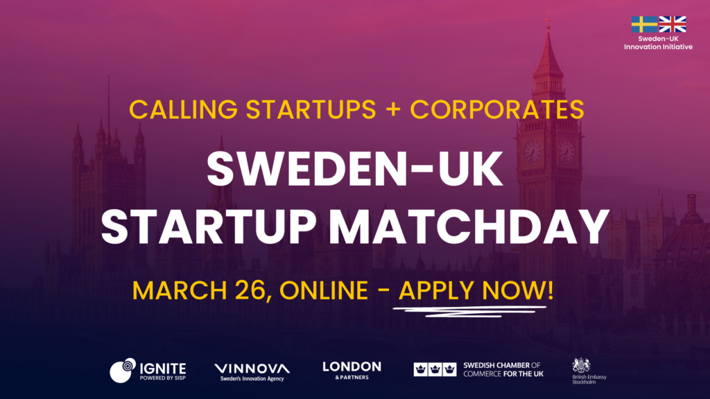 This initiative is organized by Ignite Sweden, Vinnova, London & Partners, and the Swedish Chamber of Commerce for the UK, in collaboration with the British Embassy in Stockholm.