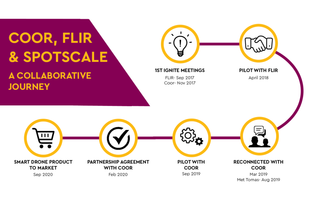 While the companies didn’t all work directly with one another, one collaboration did enable the next. While FLIR and Spotscale’s collaboration focused on developing the product and a technical solution, Coor was a success at the customer and reseller level, through their joint customer journey and product validation in the right market.